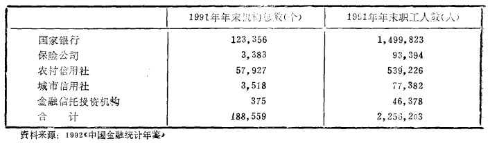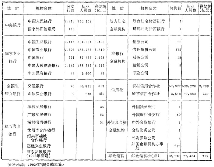 中国的金融机构(1991年12月末)"