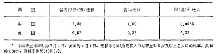 中、美两国1990年普查前五年的人口迁移率*"