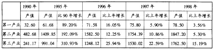上海市三大产业的产值(单位: 亿元)及增长率(1)"