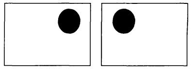 图七中的两个图形中的黑色圆圈都不在正中心,如果每个图形单独出现的话,其黑色圆圈都有向正方形中心运动的趋势。但是两个图形对称并列在一起的话,则没有这种向中心运动的趋势。
