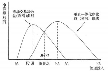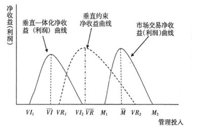情形Ⅲ反映的是在管理投入的不同水平下, 垂直一体化和市场交易形式净收益曲线性状的差异。