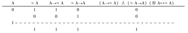 从表 1和表 2的拟真值表计算结果可知,当A的真值为0、1、1时,¬ A的真值为1、0、1,而此时A∧¬ A和A↔¬ A的真值取值都是0、0、1。这其实也就是说,A∧¬ A和A↔¬ A是具有相同的真值映射关系,因而两者在弗协调逻辑中是相同的真值函项。既然两者是相同的真值函项,那么它们就是等值的,因而它们之间就可以做等值置换。也就是说,对于前述把逻辑悖论归结为(A∧~A)的讨论方式在弗协调逻辑当中也有相类似的结果,即,在弗协调逻辑当中,如果仅仅从语法方面考虑,也可以把公式A↔¬ A归结为公式A∧¬ A。