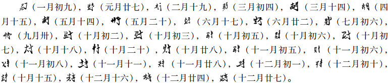 某月某日通常是上下连笔,左右布局,“左日右月”,组合成一方块,试举数例如下: