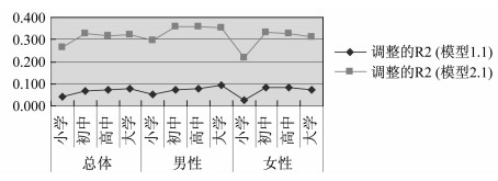 图 1 调整的R2对比-平均教育收益估算 |