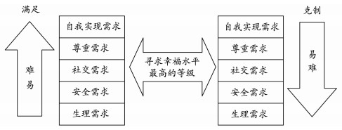 图 1 从需求等级看两种路径的均衡 注:左边的箭头表示满足这些需求随着需求等级的上升从易到难,右边的箭头表示克制这些需求随着需求等级的下降从易到难。 |