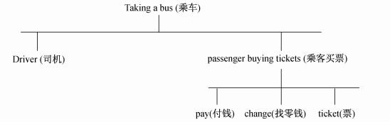 在语篇结构理解研究中,Bower和Girilo把与该领域相关的图式分成以下两类:①故事图式(Story Schema),描写原型故事及其变异的图式。“它识别构成故事的单元、这些单元的顺序、以及特别容易出现在单元之间的各种连接”;②说明文图式(Expository Schema),用于理解各种不同的说明文的图式。人们假设这些图式有序地排列在论述原形模式的周围⑥。另外,请看Alder和Doren提供的乘车图式: