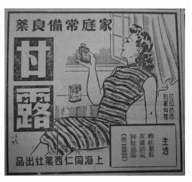 2 广告中的折中表现1949年10月2日,在毛泽东宣称中华人民共和国成立的第二天,在党报《解放日报》上发表了这个“甘露”广告,①一种护肤广告。如图所示,这个广告上画了一个丰满而漂亮的女郎,挺胸抬头,长波浪头发(像是在铁托的南斯拉夫,能否称之为毛泽东的中国呢?)这样的广告不乏其数,都有着穿着旗袍、体态优雅的女性,留着长波浪的电烫的卷发,或者是穿着西服的男子,梳着光滑的大背头。这里好像不是社会主义,社会主义社会里的女子看上去应该不会花一天的时间坐在电烫发的椅子上烫一个头发?