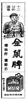 这个“金鼠牌”广告,⑤同样也是1951年的。这个形象是解放后的中产阶级的消费者形象,也就是国家干部。这种政治和消费混合在一起的形象,甚至更清楚地说明了干部(从衣着上识别出是干部)沉醉于这个品牌带来的“十二分的满意”①里。