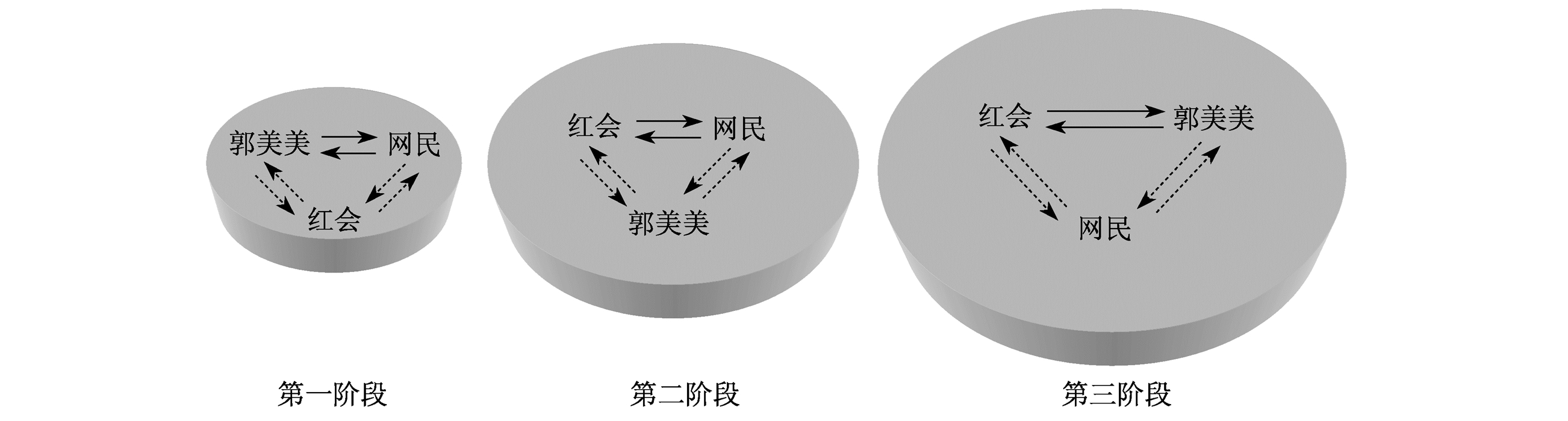 “郭美美事件”的三个阶段中主体关系的演变可以由图 1表示: