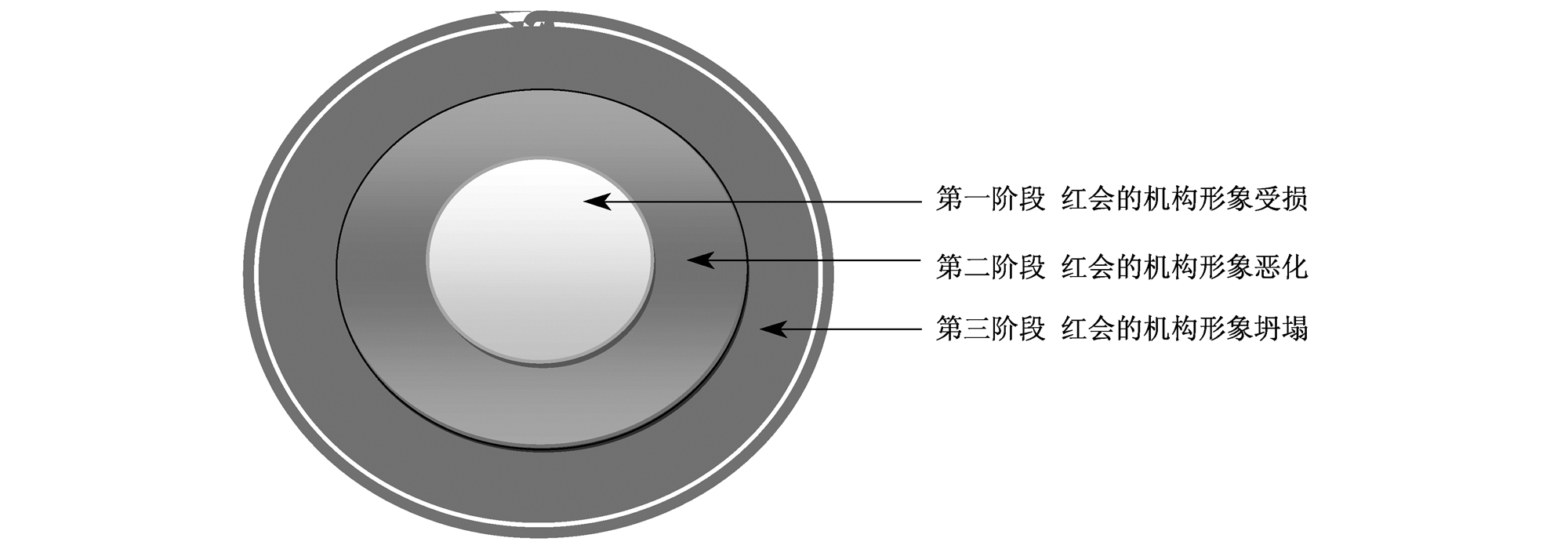 红会的机构形象一步步恶化则是以俄罗斯套娃的形式逐渐呈现出,即后一阶段以前一阶段的情况为背景并进一步扩大。如图 2: