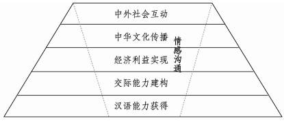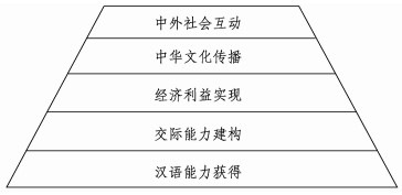 三 汉语国际教育目标体系的核心汉语国际教育的目标是一个多层次的目标体系,那么,在“汉语能力获得—交际能力建构—经济利益实现—中国文化传播—中外社会互动”这样一个目标体系中,应该以什么贯穿始终,而且不断强化?
