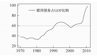 图 5 美国联邦债务占GDP比例 数据来源:President Economic Report, 2012, 1970—2011。 |