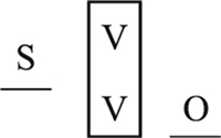 因为(15a)中的“李四”是宾格, 只能处在动词后宾格的句法槽里。因此, 在英语和汉语这样的语法中, 以动词为中心, 动词前与动词后各为一个语法分布槽(语法形态), 如下: