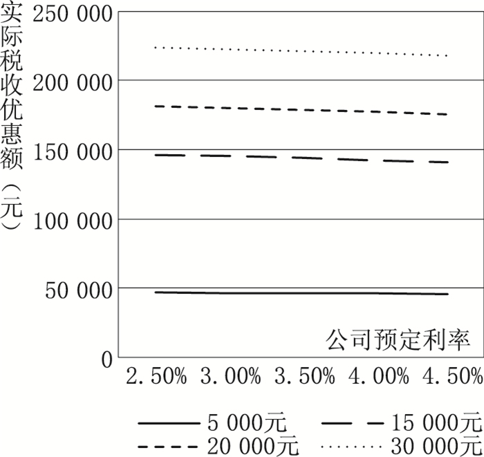 图 3 实际税收优惠额随保险公司预定利率变动 |