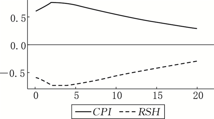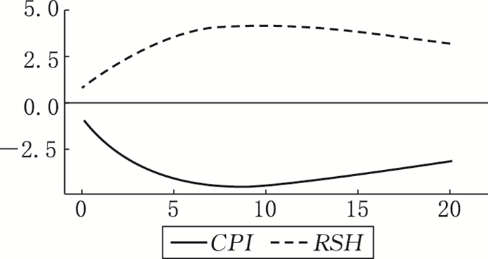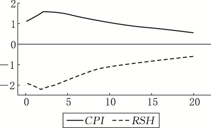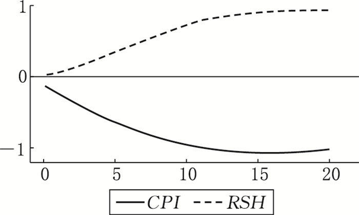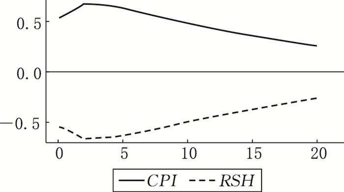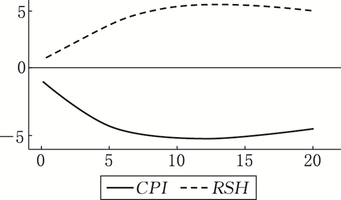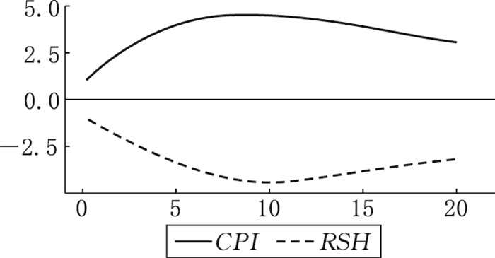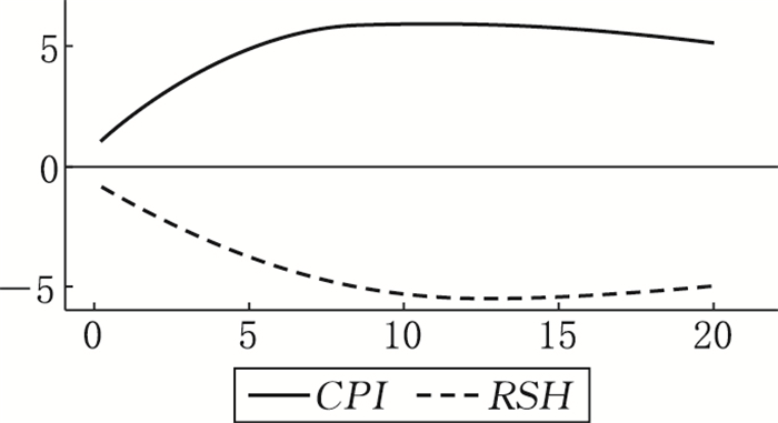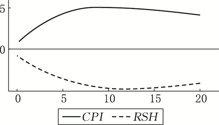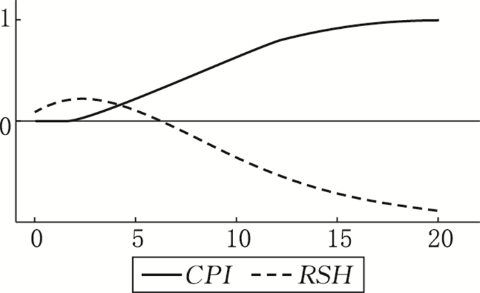 从RSH方程来看,实际股票收益率的变化存在明显的“惯性”,滞后1期的实际股票收益率对当期收益率具有显著的正向影响(效应为1.0581),滞后2期和3期的收益率对当期的影响作用较弱,即前期实际股票收益率的上升会带来当期实际股票收益率的上升。滞后1期的通胀率对当期实际股票收益率具有负向作用(效应为-0.0474),表明前期通胀率的提高会导致当期实际股票收益率的降低。