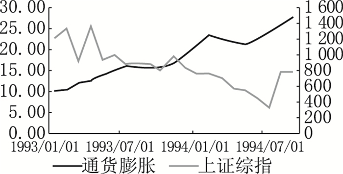 图 3a 高通胀和上证综指走势(1993—1994年) |