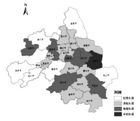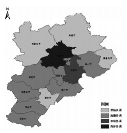 其次,从城市层面看,由表 8可见:第一,2006年京津冀大部分地区三系统间处于濒临失调阶段,耦合协调度基本集中在[0.3, 0.5]之间,大部分地区属于失调衰退类型和中间过渡类型。整体来看,京津冀大部分地区三系统并不能协调发展;第二,截至2016年,京津冀13个城市中除秦皇岛外,大部分地区的耦合协调度上升了一个层次,北京和天津属于协调提升类型,其“产业—交通—环境”系统能较好地协调发展;第三,京津冀地区除北京、天津的耦合协调度较好外,大部分地区的耦合协调度并不存在明显的差异性,也未出现中度失调甚至严重失调的地区,这说明京津冀地区间的产业发展情况比较相似,不存在具有明显短板的城市,有利于北京向京津冀“外围”城市进行产业转移,以缓解非首都功能,而其他地区可通过承接产业转移获得资金、技术、人才等,为京津冀地区协调发展提供有利的基础条件。