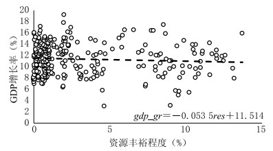 假说1:自然资源丰裕程度与经济增长之间存在负相关关系,“资源诅咒”假说成立。