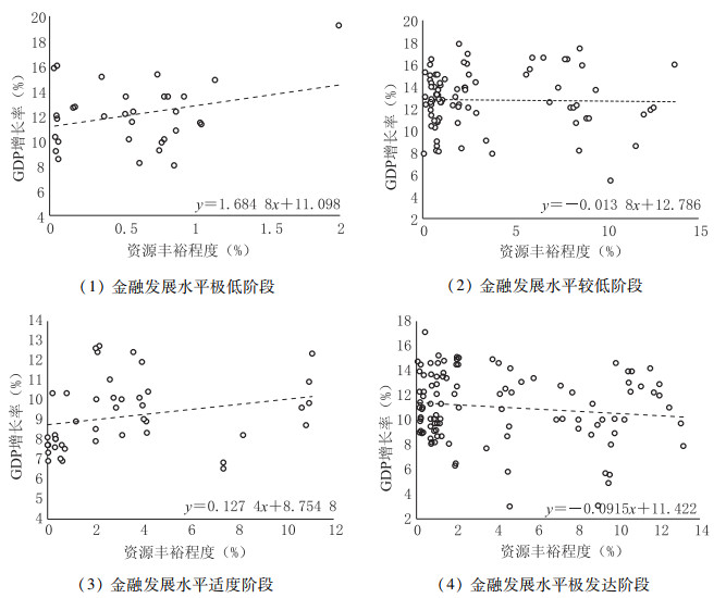 图 3 不同金融发展水平阶段资源丰裕程度与经济发展的关系 |