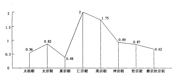 本文对《宋史·艺文志》别集类著者在北宋九朝的分布情况作了调查, 根据各朝的年均著者数, 画出一条两端低而中间高的曲线, 最高点在仁宗朝, 而仁宗朝中嘉祜登第的著者最多。统计表明, 北宋文兴盛于仁宗朝, 鼎盛于嘉祐时, 繁荣期则历经仁、英、神、哲四朝。