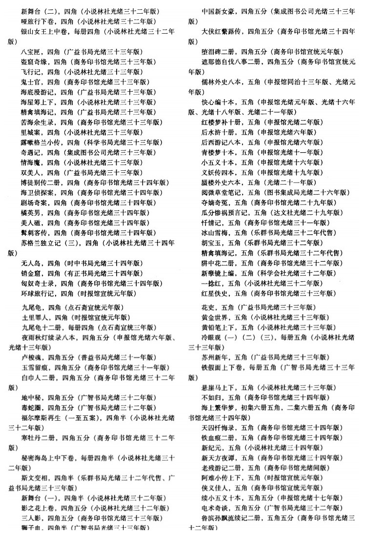 现在的新小说定价很贵, 兄弟前天在商务印书馆买上一部《红礁画桨录》, 薄薄的, 只有两本, 倒要大洋八角呢, 瞧不上一天就完了。兄弟现在光景比不得从前, 那有这许多钱来买书瞧。