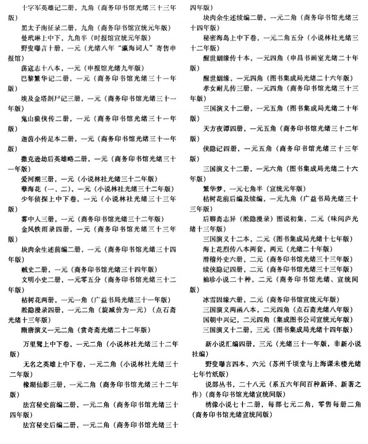 西方先进印刷技术的引入与“小说界革命”的兴起, 促使小说的创作与出版步入近代意义的模式。图书市场迅速扩大, 小说在图书市场所占的份额不断增长, 而各书局为争夺读者的市场竞争日趋激烈。在这转换过程中, 小说书价曾出现过波动, 但激烈的竞争与媒体的监督, 又使书价体系较快地进入稳定状态。