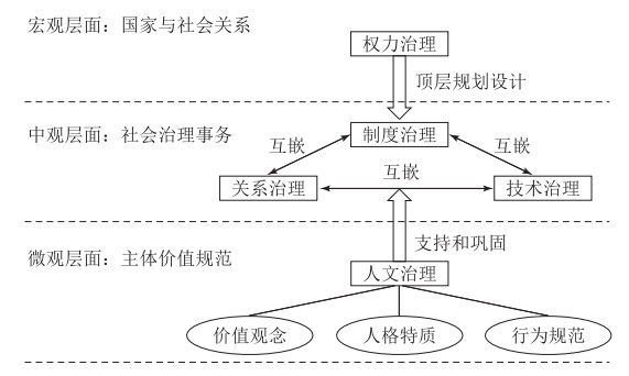 图 1 社会治理体系的三个层面:人文治理的定位及功能 |